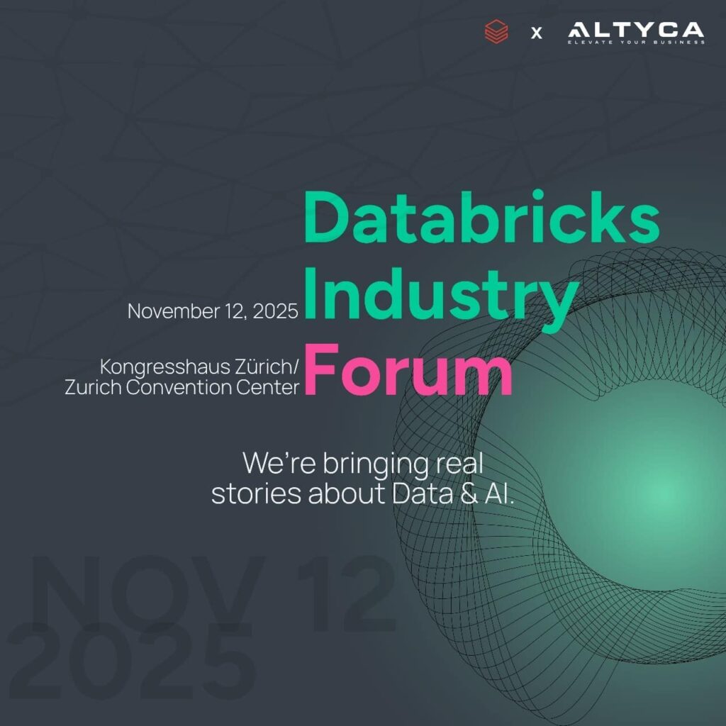 Basel, 3. November 2025 – Altyca, ein führender Schweizer Anbieter von End-to-End Data & AI Services, kündigt seine Teilnahme am Databricks Industry Forum im Kongresshaus Zürich an. Die eintägige Veranstaltung bringt Führungskräfte, Analysten und Data Professionals aus ganz Europa zusammen, um zu diskutieren, wie Data und AI Branchen wie Life Sciences, Financial Services, Versicherungen, Industrie, Retail und Energie transformieren.